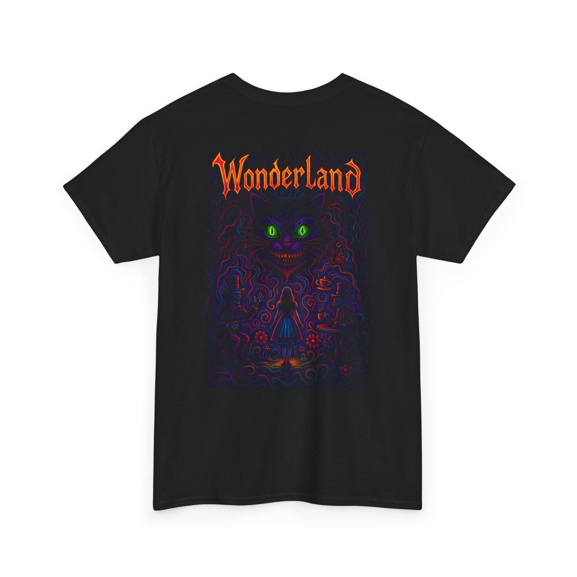 T-shirt Noir Wonderland Psychédélique